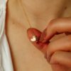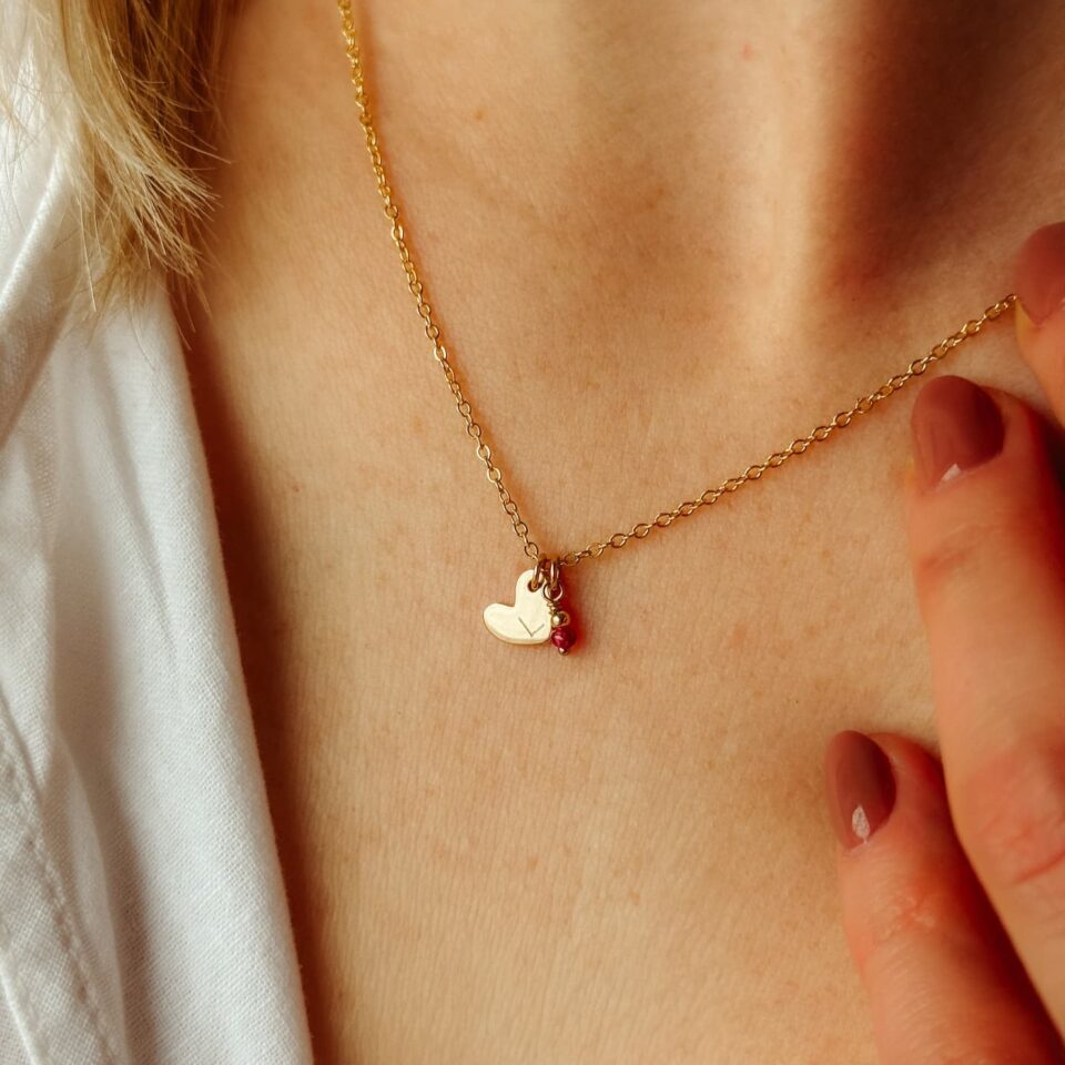 Een hartvormige hanger, subtiel gepersonaliseerd met een initiaal en een robijnsteentje. Een robijn, al eeuwenlang symbool voor passie en romantiek, geeft het hartje extra betekenis. Maar meer dan dat: de robijn staat ook voor zelfliefde.