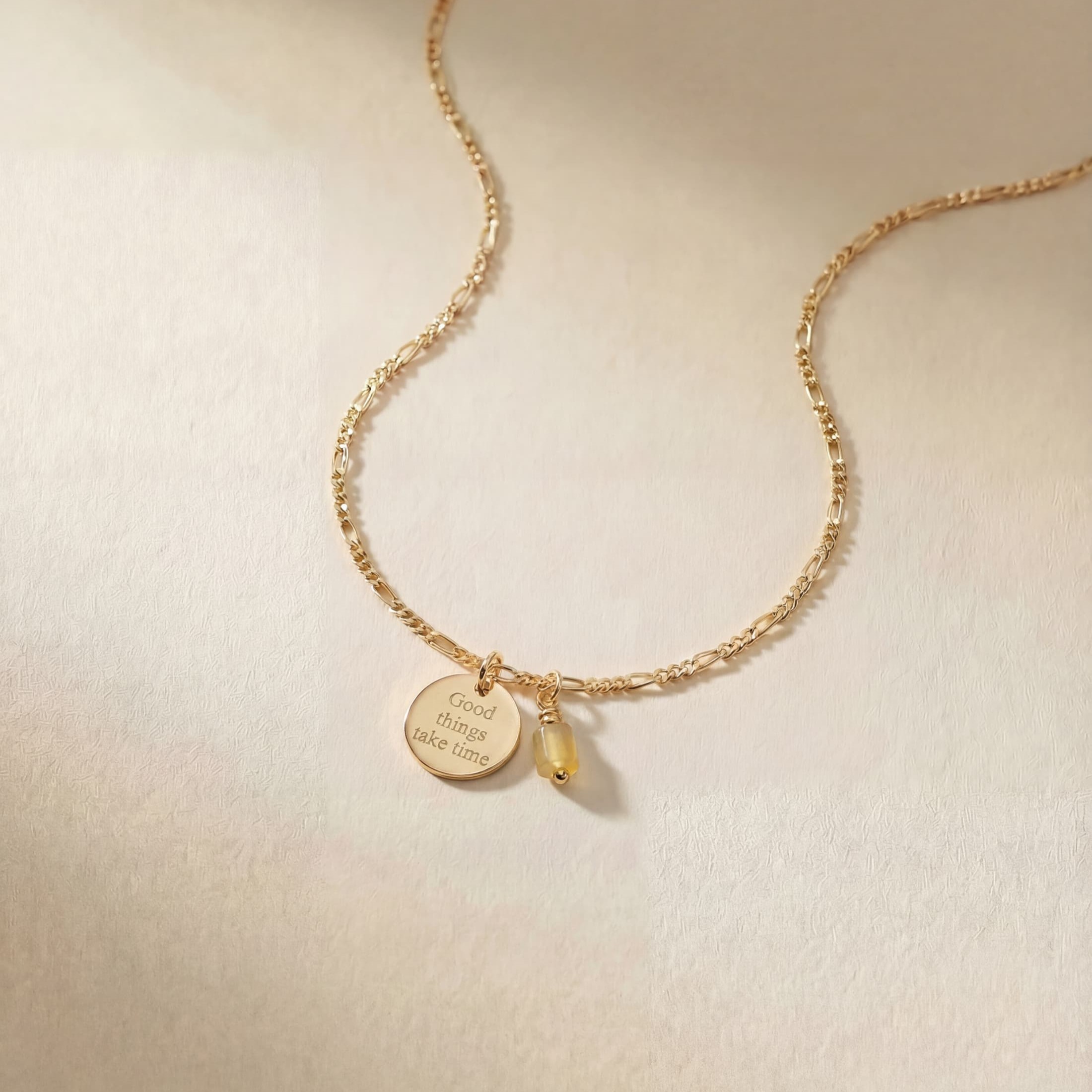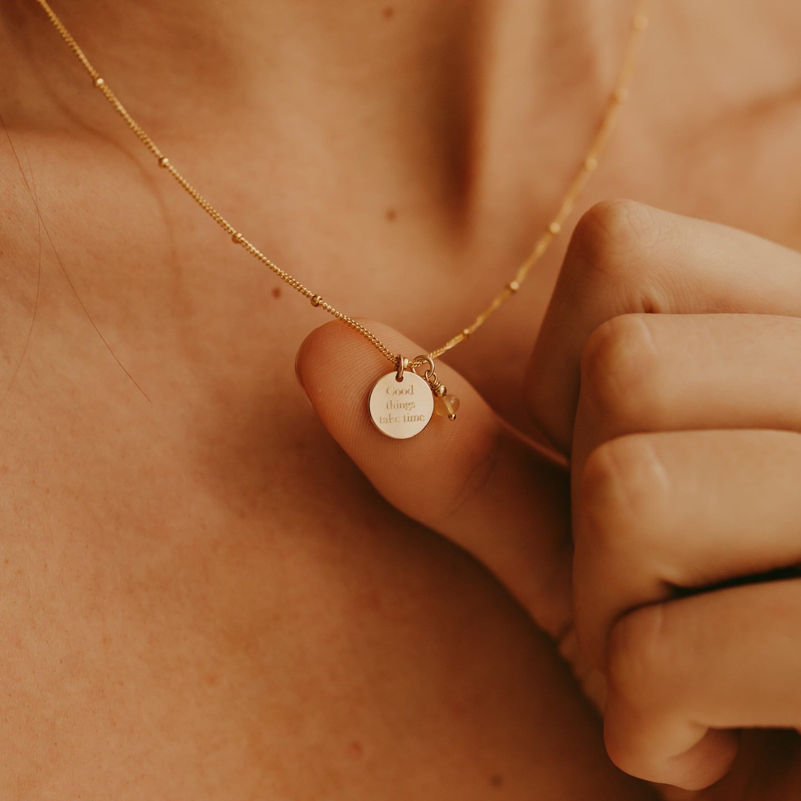 Alle juwelen worden zo gemaakt dat je ze op verschillende lengtes kan dragen (45 cm + 5 cm extender)