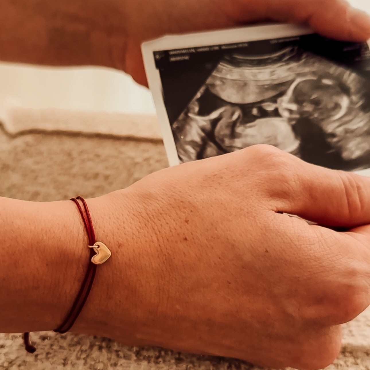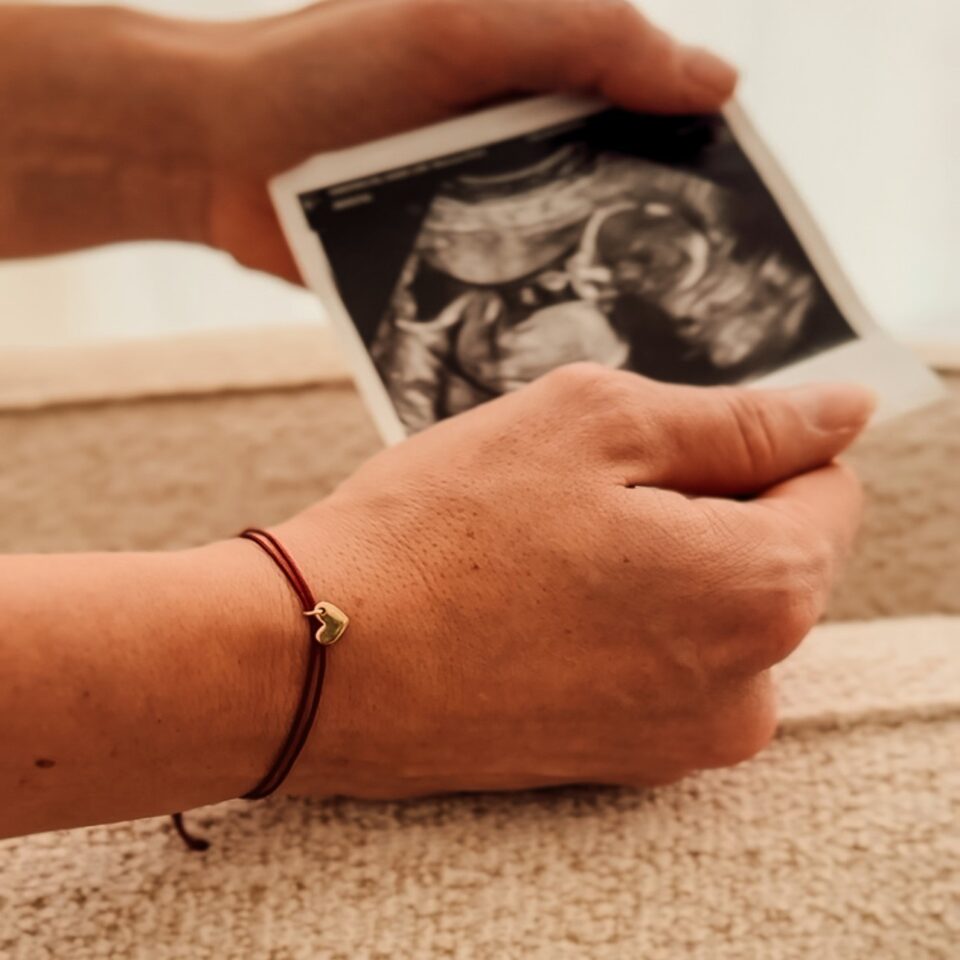 Een armbandje, in twee delen gemaakt. Eén om bij je te dragen, één om mee te geven met het kindje dat je moet loslaten.